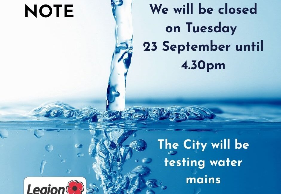 The City is testing water mains on September 23rd so we will be without water again. Sadly, that means we need to remain closed until 4.30pm that day.